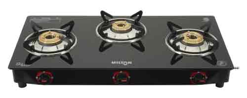 🥈 2. MILTON Premium 3 Burner Manual Ignition Glass Top Gas Stove